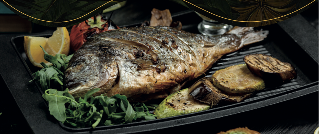(Peshk trofte e filetuar, oriz, salce Limoni, perime sezonale, patate)