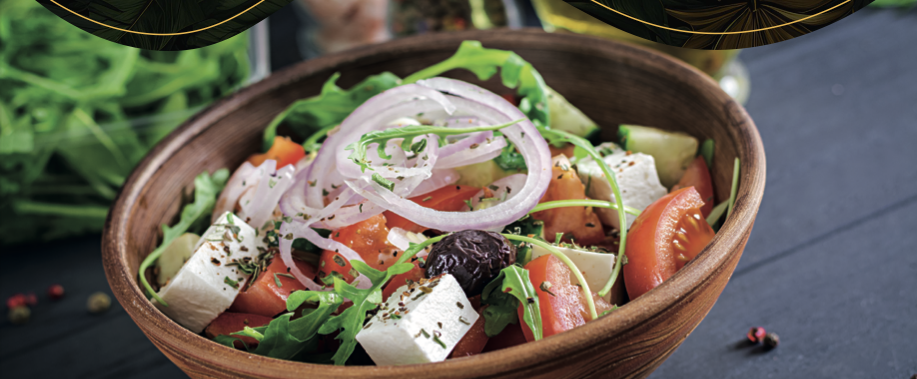(Sallatë e gjelbër, tranguj, domate, speca, karrota, qepë,djathë, ullinj)
