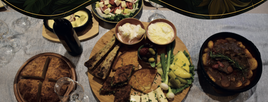(Bukë, Llokuma,qofte, suxhuk,speca ne tavë, kos, Djathë shtëpie, ajvar, xhem, lëng fruta)